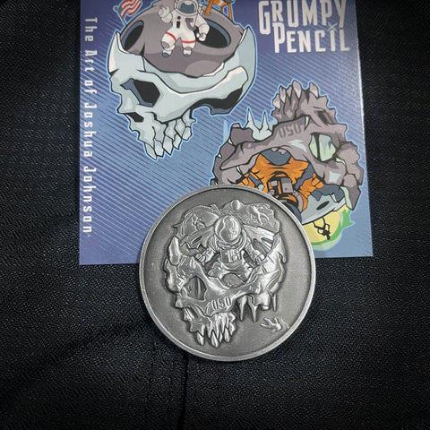 The first Grumpy Minds eye Coin is here! Probably not the last, but this one marks the classic first released design, and the recently released 50th Design! Grab this little piece of portable Grumpy artwork while you can! I'd say we can definitely look forward to more Minds eye Coins in the future!!!